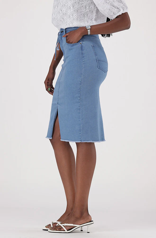 NAOME DENIM UNCLIPPED TIE SKIRT